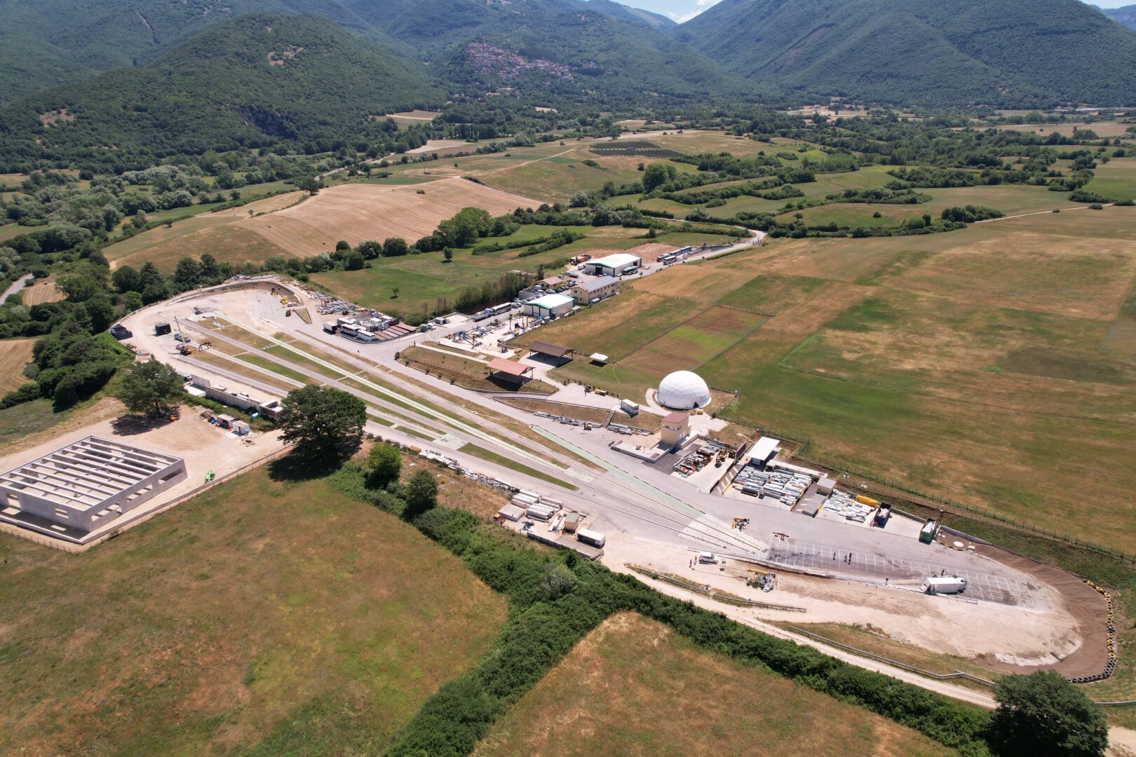 Il Centro Prove dispone anche di una tensostruttura di forma sferica che può ospitare oltre 200 persone, un’ampia zona polifunzionale che può essere adibita per la ristorazione, per l’accoglienza, per meeting all’aperto.